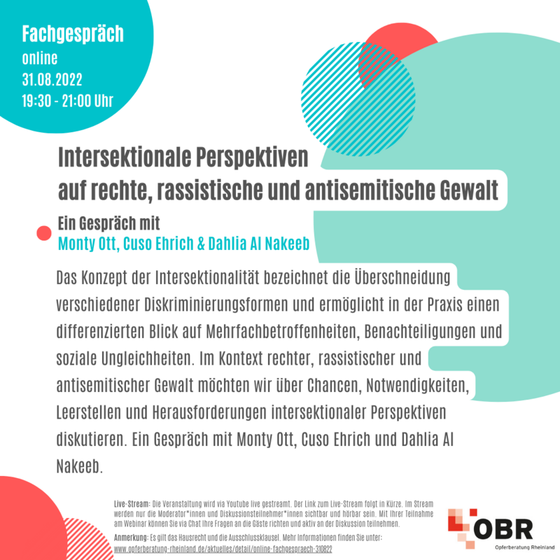 ▶️ Das Online-Fachgespräch können Sie bis zum 13.09. auch auf Youtube ansehen: Opferberatung Rheinland (OBR) - Youtube