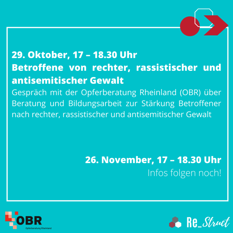 Die Webtalkreihe ist ein digitales Bildungsangebot von Opferberatung Rheinland und Re_Struct: