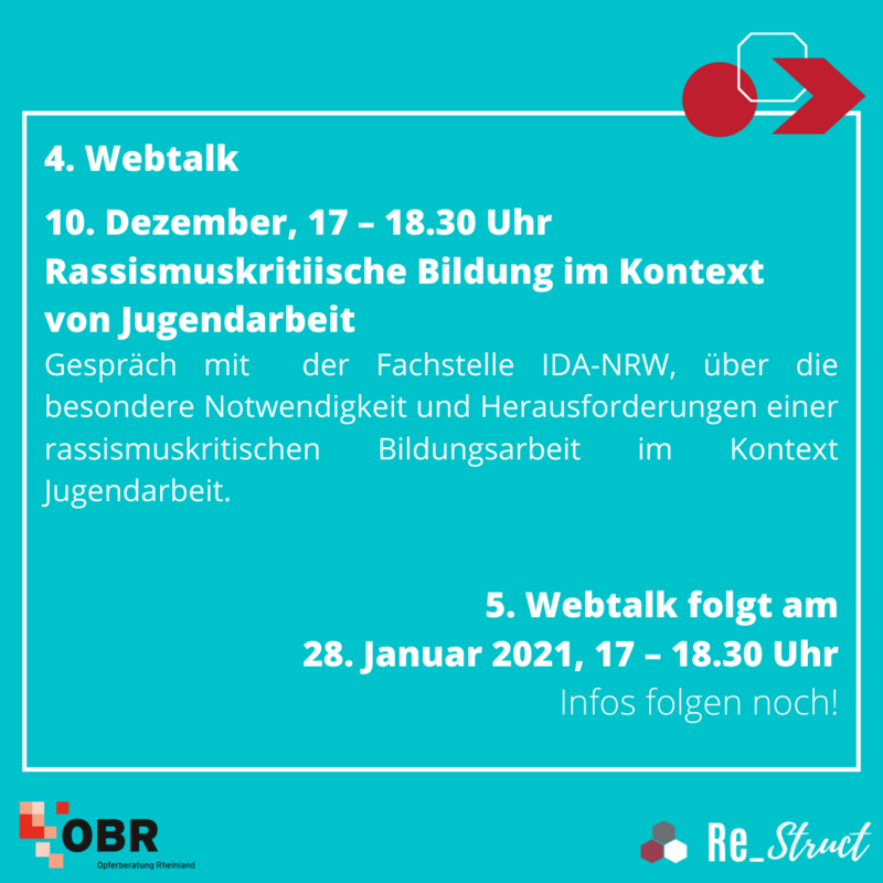 Die Webtalkreihe ist ein digitales Bildungsangebot von der Opferberatung Rheinland und Re_Struct :